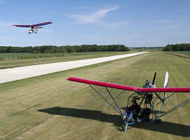 I’ve been a Quicksilver fan for over 25 years,” says George. He’s owned a number of Quicks and a dozen GA planes too. Over time his stable included a Sprint II, single seat GT400, single place Sport and single seat Sprint. The Sprint and Sport are open cockpit side-by-side models. The Sport has a double-surface wing while the Sprint is a single surface membrane. Quicksilver over the years have made the most of the tube-and-Dacron fabric, steel cable-braced minimal airframe. And if you’ve never had the pleasure, you really don’t know what you’re missing…unless flitting along at 40 mph (stall is typically in the low 30 mph regime) five feet above a cornfield doesn’t hold any particular thrill for you. There’s simply nothing like an ultralight for easy, fun flying.