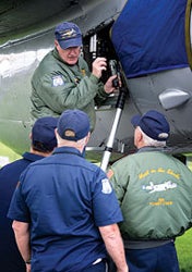 ![]() The boys of the Texas Legends Flying Museum pose in front of their B-25, Betty’s Dream. The nose art of Betty’s Dream was a huge crowd draw, keeping the Texas gang talking well into the evening. |