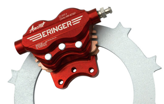 Aerotec+’s brake disc has been redesigned with a special steel alloy to increase the coefficient of friction while also handling higher temperatures while the brake caliper has been redesigned to increase rigidity for higher piston loads and incorporates new cooling fins to help dissipate heat. Beringer said Aerotec+’s 20% added torque translates into 15 to 30% greater kinetic energy meaning reduced landing distances.