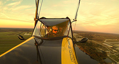 First of all, it was remarkably effortless. Even if I’m just doing a check ride or training someone in a powered parachute, it is always a hectic first minute getting the chute kited, centered, and ready for takeoff. Even a gyroplane has a handful of levers, releases, and things to monitor to turn a couple of thin blades into a serviceable wing. As an over-trained passenger, I’m always living acutely through the efforts that others are putting into their takeoffs. With the Maverick, the parachute is already overhead and ready to go. You can tell that plenty of effort went into the parachute deployment system. A carbon fiber mast with sailboat rigging technology are involved plus a little bit of bathroom technology. The actual parachute hangers (photo) remind one of hooks on a shower curtain. I-TEC’s effort on the mast system really works. The Maverick sits on the runway without any worries that the wind will tip it over before the pilot is ready or even sitting in it. When it is time to go, the takeoff is effortless and casual. I-TEC pilot Troy Townsend looked up to check the parachute before adding power. I couldn’t share that experience because I was in the back seat and all I had to look at above me was canvas located several inches away instead of Lexan and zero porosity fabric several feet away.