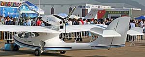 Chip Erwin of Czech Aircraft Works fame is now operating in China as Triton. We’ll have more on his new enterprise in a future SPLOG post.Recognize these? Triton is building the Mermaid amphibian and the SC3D follow-on to the SportCruiser Chip Erwin’s team originally created.Another familiar look is the Van’s RV-12. Van’s aircraft operate in many countries.SeaRey, recently SLSA approved in the USA, has been working on entering China for several years.“Nine Eagles” … is a “multifunctional motor glider” by Shanghai Nine Eagles Electronic Technology Co Ltd. The company is widely known for radio-controlled models and has recently become an agent for aircraft such as the Ibis Magic and Rotorway A600 Talon. This seems to be its first indigenous product, but it is saying nothing more. Update from Paul Jackson of Jane’s All the World’s Aircraft.This handsome cantilever high wing is the Rui Xiang fuel cell research aircraft designed by Shenyang Aerospace University on behalf of Research Institute of Liaoning General Aviation Policy and Technical Advisory Services. It has one 30 kW (40 hp) Sineton A37k154 electric motor with 7.5 kWh lithium fuel cell. Gross weight is 1,056 pounds; span 47 feet; max level speed 82 knots. It is uncertain if RX1E has flown and no known plans for marketing have been announced. It seems to share tail unit with LN-60F UAV from same source. genous product, but it is saying nothing more. Update from Paul Jackson of Jane’s All the World’s Aircraft.The Sunward Aurora was created by Hunan Sunward Science and Technology; it is essentially an Italian Fly Synthesis Texan. The prototype shown in 2008 is now in production, with at least four built and registered. Built with full collaboration of Fly Synthesis, who flew one in Italy and then shipped it to China for trials (still with its Italian registration in the cockpit). Update from Paul Jackson of Jane’s All the World’s Aircraft.The VoyageTech Black Headed Gull was first shown in 2012 by Nanchang Aviation University powered by the Rotax 912S. Gross weight is 1,210 pounds; span 27 feet; max level speed 125 knots. It was first flown on or before June 8th, 2011 and is offered for sale at Chinese Yuan 700,000 (about $113,000). Update from Paul Jackson of Jane’s All the World’s Aircraft.Back to one we know, this is Brazil’s SeaMax amphibian.The Spanish Colyaer Freedom amphibian has been seen in American and the company may appear at Sun ‘n Fun 2013.Canada’s Mosquito ultralight helicopter.The yellow one reads “HappyGyro” but these appear to be the Auto Gyro Calidus and MTO Sport.Photographer and aviation leader Jan Fridrich (L) poses with the Czech Ambassador to China Mr. Libor Sečka in the Czech LAA booth.