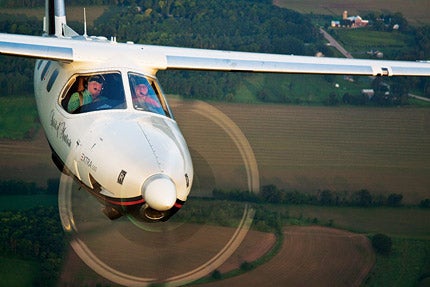 More normal takeoffs result in the kind of ascent you’d expect from 450 shp driving only 4,700 pounds of airplane. The book spec is 1,335 fpm, but my flights were all at reduced weight, so much bigger numbers were normal. Upward mobility of 1,500 fpm isn’t unusual with two or three aboard and reasonable fuel. Climbs to 20,000 feet require 20 minutes or less, and the airplane’s 5.5 psi pressurization system can maintain an 8,000-foot cabin altitude at the 25,000-foot max certified altitude.