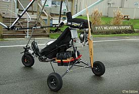 Developed in association with John McClintock under the name eUP Aviation, Green 1 is powered by a 84 volt, 19 KW hours, or 26-hp electric motor fueled by a one-hour duration battery pack. In test flights it has climbed 600 feet per minute making the effort to reach an altitude where thermals can be found and exploited no more than a 3-5 minute flight. Of course it all happens with very low noise that Randy says makes for improved neighbor relations. “We do plan to sell the package but we’re still working out pricing and supply. We’ve agreed to collaborate with Kamron and North Wing. They’ll supply the trike and wing and we’ll do the electric system.” He notes electric motor parts are sourced from Europe and Asia. No details have been confirmed at this writing about North Wing handling U.S. sales but all are excited about early results and intend to keep forging ahead. “We may come to Sun ‘n Fun 2013 and by then we may have details worked out more fully,” finished Rauck.Below you can see eUP’s wing-mounted video: