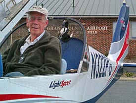 Inspired when he witnessed the Navy’s USS Shenandoah airship in 1923 followed by a first flight in a Ford Tri-Motor in 1928, Guy started flying in the early ’40s, got his license in 1945, and logged time on a dozen aircraft models. He stopped in 1952 due to other responsibilities and did not return to the aviation family until 2005 with the advent of Light-Sport. He likes low-wing airplanes, researched articles, and selected the Sportstar. “It’s nice to fly, comfortable, has plenty of leg room and is low in cost,” observed Guy. Like many who switch from heavier general aviation aircraft he finds it a bit sensitive and would prefer wing tanks for ease of filling. (Newer Evektor models answered this request.) His aviation buddies provide a stool to make getting up on the low wing easier and they carry it along on short cross country flights.