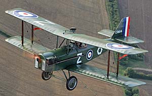 Watching the world drift by under a pair of sturdy, wire-braced wings is particularly special. Wind wails in the wires and the engine growls contentedly. Nearly one hundred years after the “Big War,” I flew a scale replica of one of the most famous fighters of that era: the iconic SE5a. *** Looking remarkably realistic from a distance, I drew nearer wondering if the similarities were only skin (fabric?) deep. Knowing the basic data of a full-scale SE, I was surprised when a quick calculation on the back of my kneeboard revealed my ship known as “Z” actually has a better power-to-weight ratio than a real SE5a! It also has a higher wing loading. *** Z is painted to resemble the personal aircraft of one of the war’s top-scoring aces, Major W. A. ‘Billy’ Bishop. Z carefully replicates the experience of operating a WWI fighter and this is especially true regarding ground handling. I appreciated a wing-walker to help me during taxi. The view immediately forward is not that good and the brakes are weak. *** Lining up precisely in the center of the turf runway I fully opened the throttle. For the initial part of the take off run you’re quite blind. Z’s acceleration is excellent and the tail can be raised almost immediately. Now I could see. *** Z rushes wide-winged into the wind like a true thoroughbred and after a run of 500 feet lift-off occurs at around 40 knots. Best rate of climb is about 55, although there is no point in chasing the airspeed. The best way to fly aircraft such as Z, which has a very low wing loading, is simply to maintain the optimum pitch attitude and accept the speed and climb rate that this produces (about 800 fpm). *** Z is loud though the small windscreen is surprisingly efficient. As long as your turns are well coordinated little air enters the cockpit. As for visibility in flight… well, it’s a biplane, with all the configuration’s deficiencies. *** However, Z’s controls are powerful and crisp, and the engine responsive, while the fine pitch prop and myriad struts and wires produce plenty of drag. Slow flight is fairly benign, and the aircraft stalls somewhere around 37 knots. Cruising at 70 knots, with the rays of the setting sun streaming through the struts evokes a true WWI experience. With the air racing past the cockpit and the raucous roar of the engine ringing in my ears I could easily imagine myself flying back to base after a scrap with the fiendish Hun. *** The light had taken on the wonderfully sublime quality that you often get in the hour before sunset. The wings fairly glowed in the soft, suffused sunlight and flying over Grimsthorpe Castle gave the whole experience a feeling of timelessness. The experience was so real, I tended to nervously check my “six” to make sure some Fokker wasn’t sneaking up on me! *** In the circuit I found that the classic curved glide approach technique all the way round from the end of the downwind leg to short finals worked best. As I crossed the fence I chopped the power, flared, and Z softly sat down. With the tailskid digging into the ground and my feet dancing on the rudder pedals it tracked dead straight, although I could feel through my seat that it would cheerfully ground loop if I let it. Just like a real SE, Z prefers landing at a “field for aeroplanes” rather than an airfield. In WWI most military air bases were large, approximately circular grass fields. Consequently, you always landed directly into wind and Z prefers this treatment. I would rather land in a field next to an airport than chance landing Z on Tarmac in a crosswind. [Watch for more from Dave Unwin starting April 18th. —DJ]