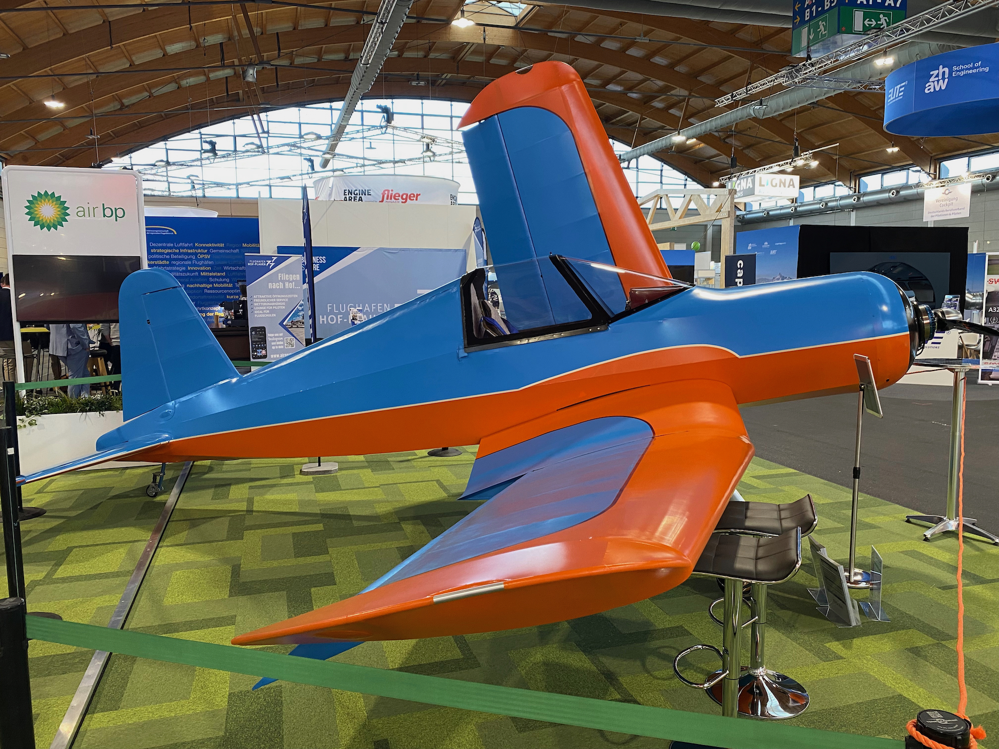 Remaining at the very light end of the sport flying spectrum, German airframer JH aircraft had its electrically powered Corsair e-motion on show. Looking a little like the classic Vought F4U Corsair of World War II and Korean War fame, this machine has a span of 24 feet 6 inches. But just like a real Corsair the wings fold, reducing the span to only 9 feet—not un-trivial if hangarage at your airport is expensive. Powered by an electric motor that can produce a maximum of 30kW/40 hp (20kW/26 hp continuous) it can carry up to 136 pounds of batteries, which the company claims will provide a flight time of up to two-and-a half hours. Compliant with FAR Part 103, it stalls at 24 knots, cruises at 54 knots and climbs at 1200 fpm. Takeoff over a 50ft obstacle is less than 400 feet.
