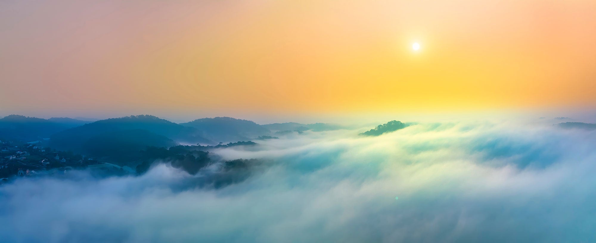 The common scenario is a predawn departure under clear, calm skies, as the last bit of cooling from the night takes place. The hapless pilot takes off under the stars, the sun peeps over the horizon, the air at the surface begins to stir and condensation takes place, forming a fog blanket over the terrain. It can creep out of nearby bays or marshes, march across the airport, and leave it totally obscured in the space of a few minutes. Sunshine may prevail a few hundred feet above the surface, but provide scant relief to the pilot trapped on top.