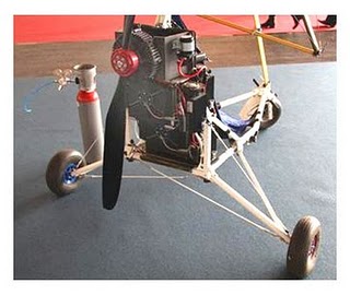 French hang glider pilot and light sport innovator/entrepreneur G©rard Thevenot has been a visionary all his life. I’ve profiled him previously re his efforts to create alternative-powered sport aircraft. *** He’s been testing electric trikes for Yuneec, the China company that’s developing several commercial sky-breaking electric aircraft designs. *** And last fall he set an electric trike record for sustained power flight of 1 hour 16 min. *** Today comes word from Aero 2010 International Exhibition for General Aviation, the big European airshow, that Thevenot has been awarded the 2010 E-Flight Award for his hydrogen fuel cell-powered trike. *** His trike is one of three fuel-cell powered aircraft exhibiting at this year’s Aero show. *** A fuel cell is a power source that creates enough electricity to drive an electric motor, using, in Thevenot’s case, only hydrogen fuel and oxygen. *** The exhaust components? Heat…and water vapor! *** Fuel cells operate at low temperatures too: under 200 degrees F. *** And there is no battery or accumulator, just the fuel cell itself. *** The 77 lb. wing’s wingspan is 39 feet. The 7 kW-generating motor weighs just 121 lbs, including the 1.25 gallon hydrogen tank. *** Trike (hang glider plus three-wheeled buggy), fuel cell and the single pilot (Thevenot) all weigh less than 285 lbs. “This allows it to fly,” Thevenot told Aero’s reporters, “powered only by the fuel cell and without the assistance of an auxiliary battery.” *** Boeing flew a fuel cell powered GA-style aircraft for 20 minutes in 2008. Thevenot has flown his fuel cell trike more than an hour, including across the English Channel in 2009. *** I’ve not been able to find out yet whether that hour represents a full tank’s worth of hydrogen or just what he’stested so far…because in 2006, Thevenot’s fuel cell-powered car won the Shell Eco Marathon with a hydrogen supply corresponding to one quart of gasoline – which went a world record distance of almost 2500 miles! You read right: that’s mileage equivalent to 10,000 miles per gallon! *** “Oh honey, did you remember to fill up the car last January?” *** Of course, hydrogen is ridiculously expensive. This is R&D time, not almost-ready-for-prime time. Likewise, for those who think “Hindenberg!” whenever the word hydrogen pops up – which is all of us, right? – there are many technologies including solid state oxice forms of hydrogen and other fuels being explored, not just hydrogen gas. *** Meanwhile, congratulations to Monsieur Thevenot for his vision and execution so far. *** Two other ongoing fuel cell-powered electric projects to follow: Hydrogenius, from the University of Stuttgart and Skyspark, which flew a GA-style airplane at 150 knots recently. *** While a trike may seem more trivial stunt than practical application in our age of private jets, $500K GA cruisers and $100,000 LSA, that’s exactly the point: first, we show the vision, then we figure out how to upscale to the market. *** For a good discussion of this topic as it relates to growing aviation in general, see Chris Finley’s excellent discourse here. *** This is what pioneer days look like: forward-thinking people doing their thing, and one day we all wake up and the world’s changed. *** Remember Wozniak and Jobs (Apple Computer, started in a garage 30 years ago), Yuneec (which made its fortune making electric motors and accessories for model airplanes) and…well, the Wright Brothers, who quietly pursued their vision in the winds of Kitty Hawk, while the world went on it’s merry way convinced man would never fly. *** SIDE NOTE: A good site to keep track of: The E-Flight Expo, which shows at the Aero Expo and explores alternative power and solutions to the global challenge of internal combustion engines. *** isn’t this a great time to be alive? *** —photos courtesy Aero Expo and Willi Tacke
