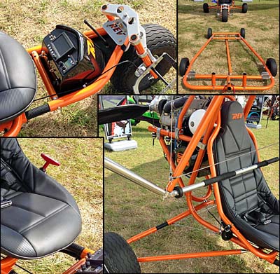 Large main gear tires combine with a robust nosewheel to assure landing on rough fields won’t provide a threat and all three wheels use a smart but simple and light form of suspension (see black insert in rear gear leg and under the seat of the front support arms). Even the nosewheel gusset has a fine touch with the product name machined into the plate. A parachute is fitted, allowing empty weight to rise in a way that “buys” a few extra pounds (the parachute weighs slightly less than FAA’s AC 103-7 allows).