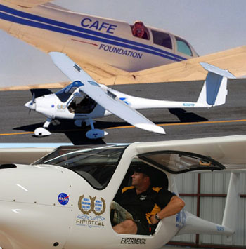 Amid furious preparations for Oshkosh, CAFE Foundation, the efficiency folks, announced teams that will vie for a second year of prizes. CAFE has a $300,000 purse thanks to their partnership with NASA, which is celebrating its 50th Anniversary in 2008. *** It may not surprise you to hear that four of five teams entered will fly Light-Sport Aircraft, and at least one is sure to end in the money as one prize ($10,000) is for “Quietest LSA.” Other prizes are a maximum of $150,000 for lowest community noise; two $50,000 prizes, one for “Green,” another for safety judged by handling qualities; a $25,000 speed prize; and four $3,750 “Showcase Prizes” covering quietest cabin, best angle of climb, shortest takeoff, and best glide. Winning a couple of the larger prizes is enough money “to actually buy someone their own LSA,” said CAFE President, Brien Seeley. *** The teams competing will fly a Pipistrel Virus (last year’s big winner of $165,000!–photo); a modified Diamond DA20-A1; a Dynamic WT9; the UFM-13 Lambada, and a Flight Design CTsw. Despite doling out NASA’s money, CAFE itself receives no funding from the space agency. A $4,000 entry fee covers some costs. The competition will occur after Oshkosh at CAFE’s Flight Test Center in Santa Rosa, California from August 2-10, 2008.