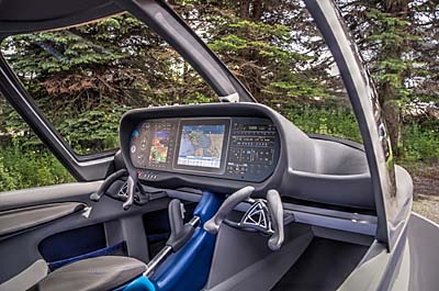 MVP’s Instrument panel also retracts to allow more maneuvering room and to protect avionics from water damage. Four folding panels that MVP.aero calls the “origami deck” can be deployed in two halves to fully cover the seats of the cockpit, enabling a completely flat floor from the bow to the back of the baggage compartment. “This amazingly big surface on a relatively little airplane is large enough for two people to stretch out and sleep,” said Lynds. “Deploying a custom-fitted tent and inflating air mattresses makes spending the night a delight.”