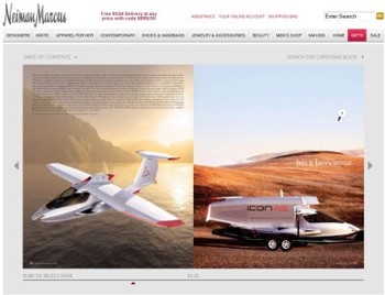 Right in line with Icon’s high-viz marketing push for its A5 amphib LSA comes the announcement that iconic big-ticket shopping purveyor Nieman Marcus has the futuristic waterplane as the number one (and priciest) fantasy gift in its 2009 Christmas Book. *** The Icon is currently in extensive flight testing at Tehachapi, Ca, one of the soaring meccas of the west but also near Lake Isabella, so both the land and water chops of the A5 can be thoroughly wrung out. *** An interesting sidenote mentioned in the piece: Matthew Gionta, ICON’s chief technical officer, is quoted as saying 33% of the A5’s current customer base has “never flown before.” *** That’s a testimony to the vision of the company’s founder, Kirk Hawkins, who believes the ICON will bring new pilots to aviation with its glossy marketing of the A5 as a kind of flying jet-ski you can easily trailer to your holiday getaways. *** The Neiman Marcus Christmas Book package that Icon created includes the airplane with exterior and interior luxury upgrades, custom trailer and FAA-certified sport pilot licensing for two. Just pony up $250,000 and its yours. *** BTW, it’s the priciest gift in the entire catalog. *** North Pole scuttlebutt has it that Santa himself is considering the package. The question remaining is whether Old St. Nick can fit his rotunditude into any LSA cockpit. Stay tuned for further updates. *** Meanwhile, ICON reports 466 sales to date! Most impressive for a ship that won’t be delivered until at least late 2011. *** Here’s a couple more links to the catalog announcement: Luxist and Dallas Business Journal. *** —web page copy courtesy Neiman Marcus