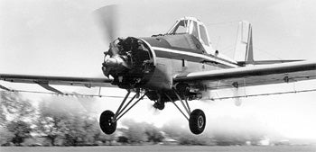 The Thrush 800 utilizes an impressive 800-hp Pratt & Whitney radial engine. It has a useful load of 1,900 pounds and a hopper capacity of 400 gallons. Marsh Aviation Co. builds a modification of the Thrush, called the S2R-T Turbo Thrush, in which turbine power replaces piston power. For standard use, the AiResearch turboprop is derated to 600-shp; however, maximum 778-shp output is available for emergencies. One advantage other than additional power is that normal automotive diesel fuel can be used if jet fuel is not at hand. Top speed is increased to 205 mph, and climb rate is boosted to 3,000 fpm.