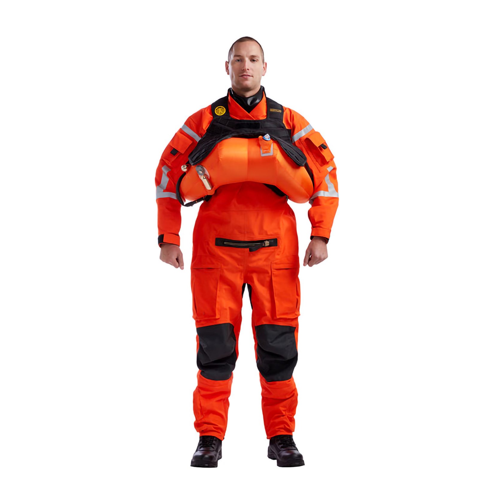 Switlik’s UA-80 Evolution vest is FAA-approved for underarm constant wear. It provides flotation around the body, so it does not interfere with the head and neck. It’s able to auto-right unconscious aircrew to bring them to a face-up position. It has a twin-chamber inflatable cell with two oral tubes, storage pockets and quick-release buckles. Made with 1000D textured nylon, it comes with an emergency locator light and a grab handle to assist in rescue. It’s approved to TSO-c13G.