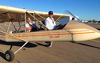 Nearly always hard at work on terra firma, Dave went aloft (photo) to get some air and to capture aerial images. Dave took a seat in the twin-engined AirCam with company designer and boss, Phil Lockwood so you can see Copperstate 2016 from the air.