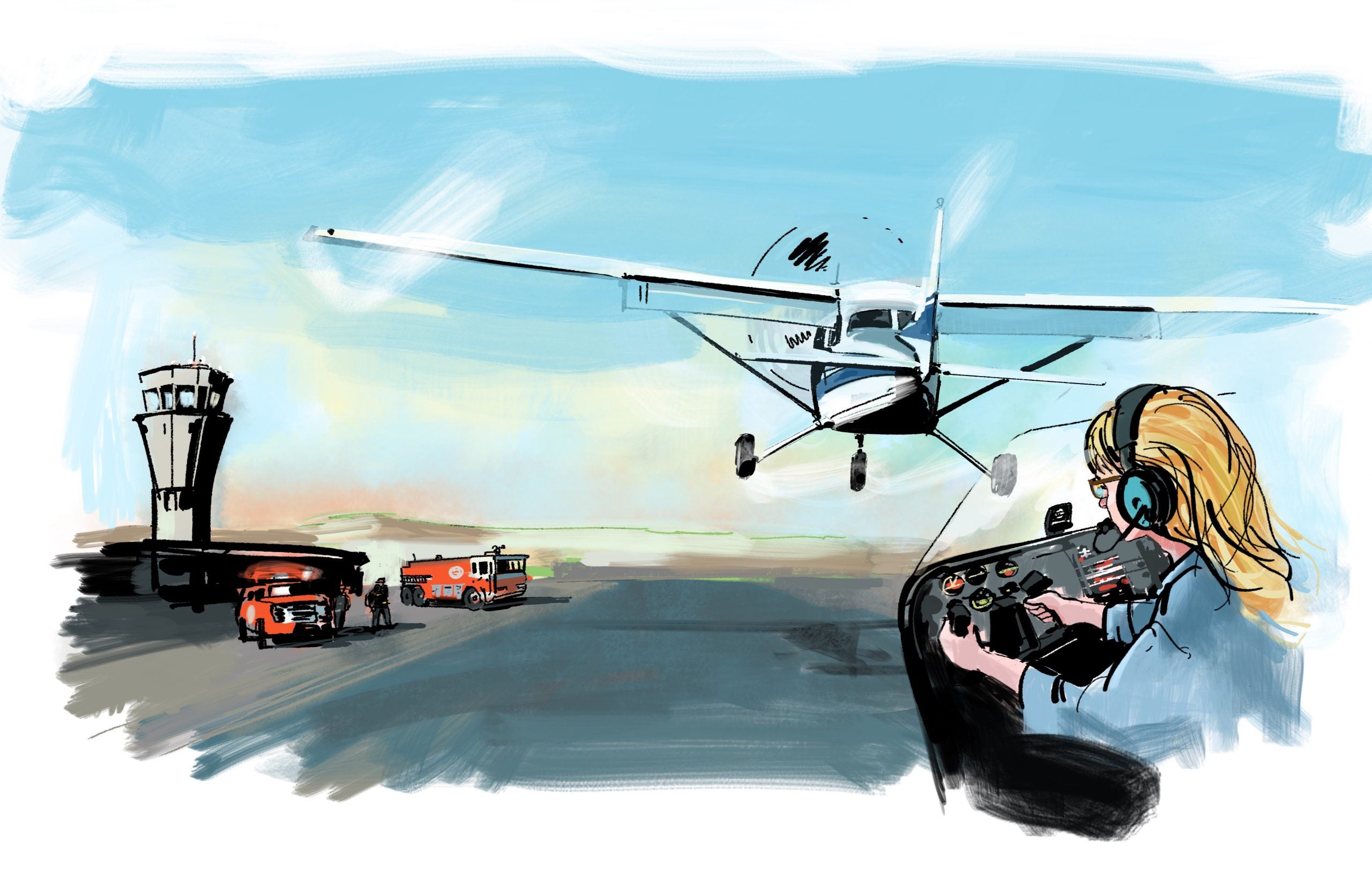 I watched as the group of emergency vehicles raced toward me with their lights on and sirens blaring. As the firemen ran to check on me, my hands started to shake. I felt small as I got out of the plane and stood on the runway to talk to airport operations while waiting for a tow. I was able to watch all of the planes landing on the parallel runway. I felt overwhelmingly grateful that I got the plane and myself safely on the ground.